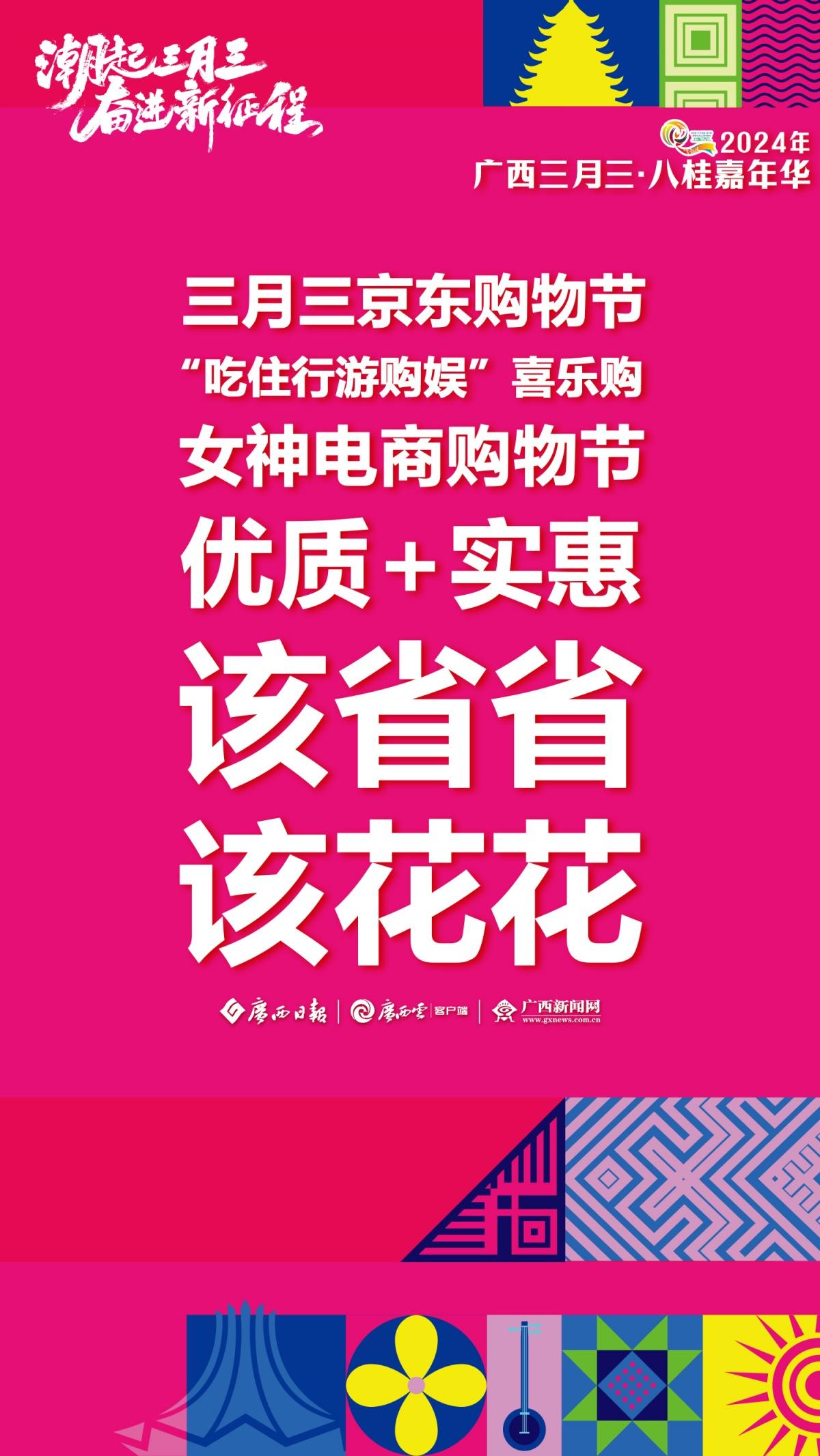 2024年“廣西三月三·八桂嘉年華”新聞發(fā)布會于3月28日上午舉行。發(fā)布會上介紹,今年廣西三月三期間,自治區(qū)層面將開展9項重點活動和25個大類活動、多家4A級以上旅游景區(qū)向全國游客推出首道門票五折優(yōu)惠、22個專場電商活動為消費者提供優(yōu)質(zhì)商品……此外,“民歌一條街”、國潮動漫節(jié)、電競大賽、相親大會等活動潮玩不停,樂趣無限!廣西日報-廣西云客戶端推出一組極簡海報 ,為你揭秘廣西三月三活動安排。