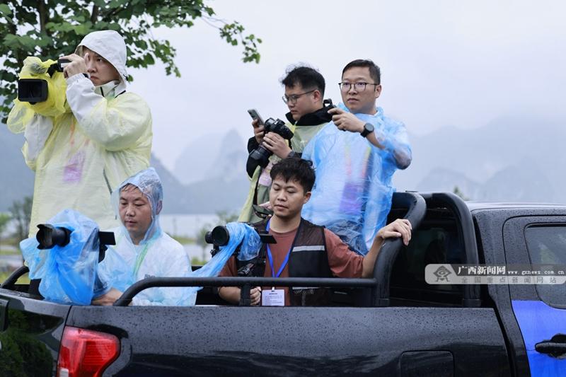 來賓市融媒體中心記者在戶外采訪。李干金 攝