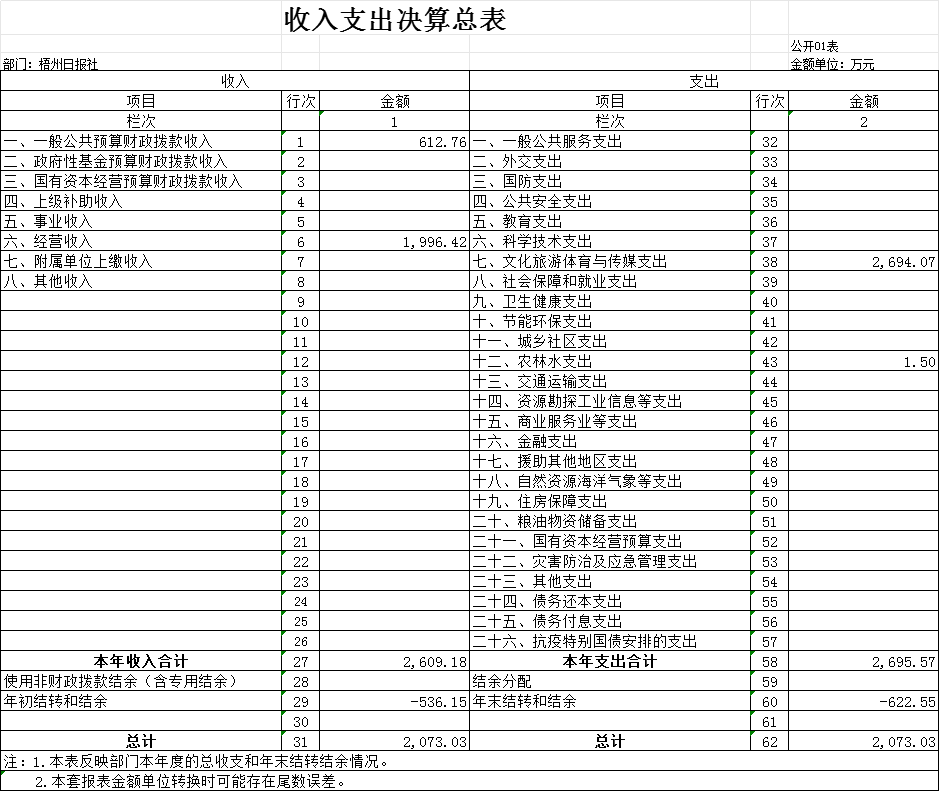 2023年部門決算報(bào)表(此部分另附表格,詳見《附件:梧州日?qǐng)?bào)社2023年度部門決算公開表》)