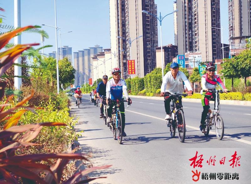 幾位老年騎行愛好者騎自行車鍛煉。梧州日報記者 李鴻榮 攝