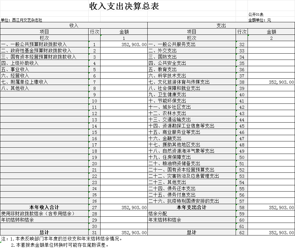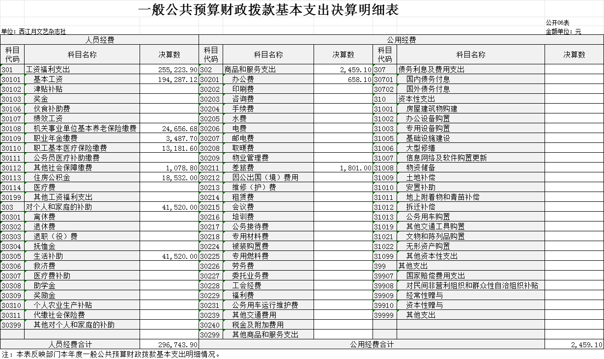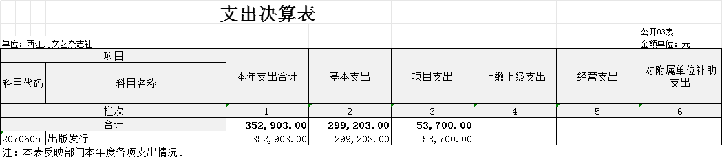 2023年單位決算報表(此部分另附表格,詳見《附件:西江月文藝雜志社2023年度單位決算公開表》)
