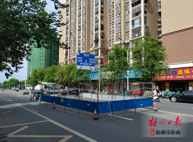 6月26日,長(zhǎng)洲區(qū)新湖一路的圍擋占據(jù)了半幅行車道。 記者 吳艷虹 攝