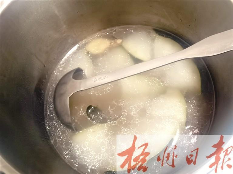 步驟4:前期制作完成,此時(shí),湯可以直接喝,也可以加白貝燒開(kāi)再喝,清甜可口。