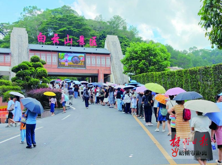 暑假期間,我市傳統景點游客量大增,在白云山景區,上山游玩的游客更是打著傘在烈日下排起了長隊。
