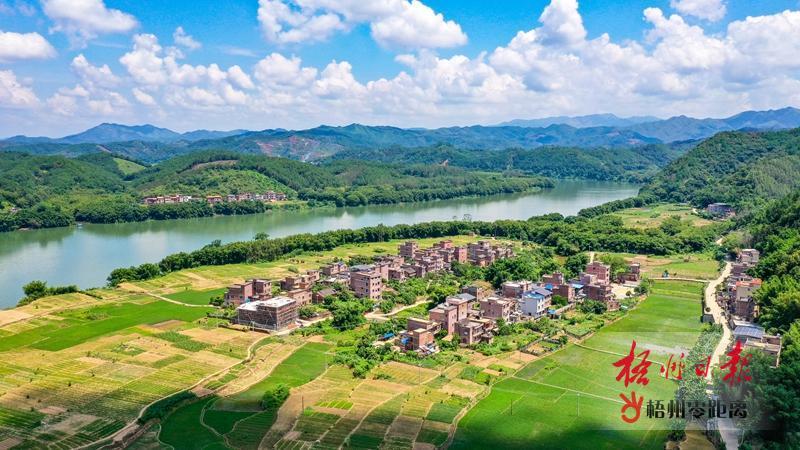 8月23日,長洲區倒水鎮古善村的晚稻等農作物長勢喜人(無人機拍攝)。色彩斑斕的田園與青山綠水、藍天白云構成一幅優美的田園風光畫卷。 黎杰源 攝