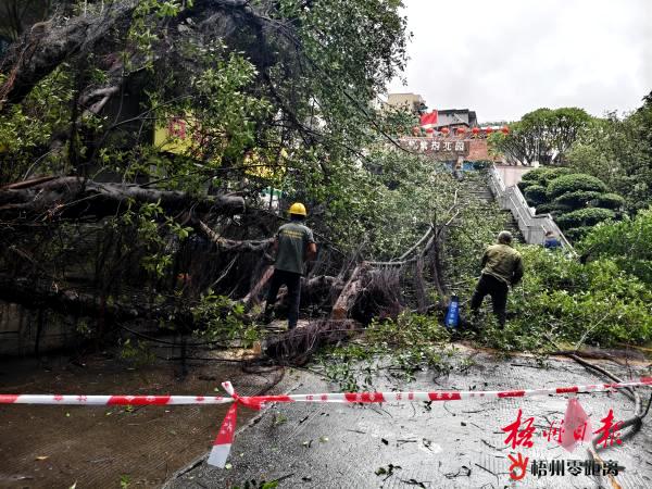 專業(yè)人員對倒伏樹木進行分段切割、清運。