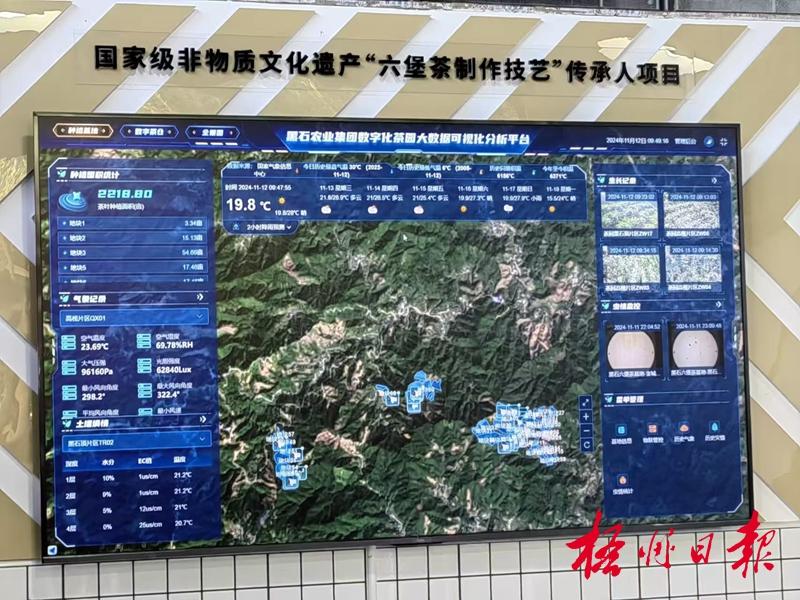 “3號茶區土壤濕度16%,低于18%標準值,系統已自動灌溉?!痹诤谑げ柙床﹫@內,該園負責人姚舜指著中央監控大屏介紹,屏幕上各茶區溫度、濕度、病蟲害信息實時跳動,蟲情測報站和土壤墑情監測設備如同“千里眼”。他調出一周前的數據分析:“以前種茶靠經驗,天旱才澆水;現在智慧平臺提前預警,茶葉品質穩了不少。”