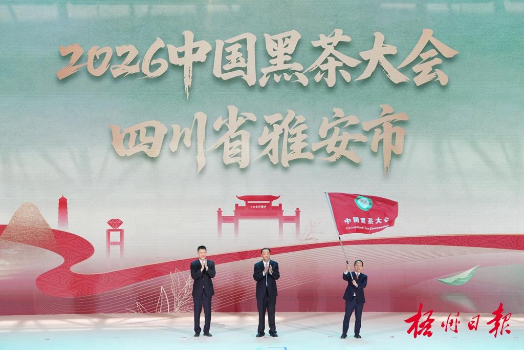 開幕式現(xiàn)場(chǎng)發(fā)布了《2025中國(guó)黑茶產(chǎn)銷形勢(shì)分析》《中國(guó)(梧州)黑茶產(chǎn)業(yè)高質(zhì)量發(fā)展宣言》,以及2025年度中國(guó)黑茶企業(yè)代表品牌、2025年度中國(guó)黑茶企業(yè)特色品牌、梧州六堡茶十大影響力品牌、2025“梧州六堡茶”新茶飲產(chǎn)品研發(fā)推廣活動(dòng)結(jié)果;舉行了中國(guó)黑茶(六堡茶)拍賣交易中心授牌儀式、重大項(xiàng)目簽約儀式,并向大會(huì)下屆主辦城市四川省雅安市交接會(huì)旗。