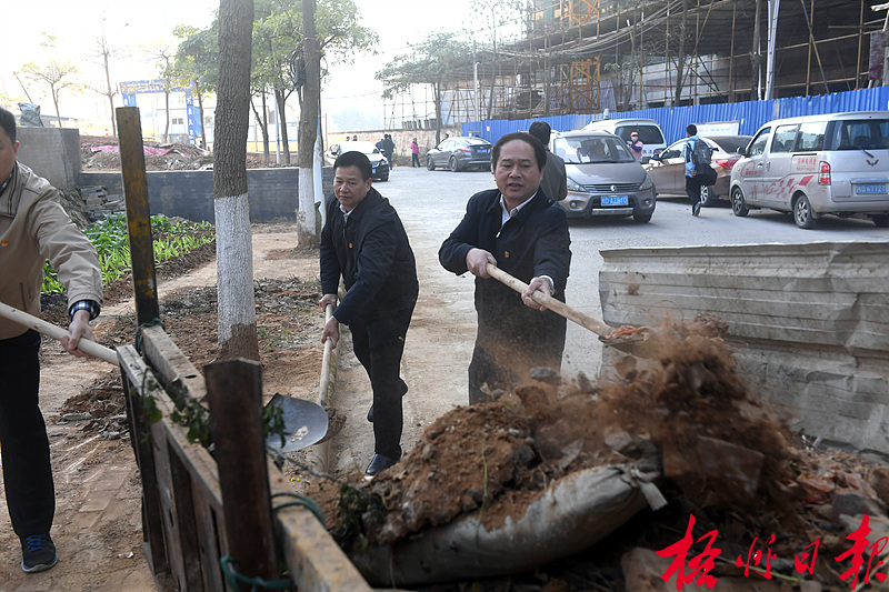 全桂壽等市領導與黨員干部群眾一起上街大掃除