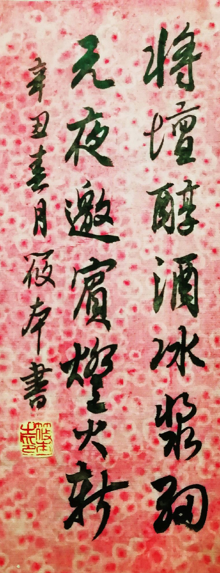 今宵銀漢渡冰輪,片片波光泛海津。 綠柳池邊風弄笛,紅桃樹下月追人。 花香淺淺歌聲暖,夜色深深笑語頻。 燈影霓虹輝玉殿,瑤琴一曲慶新春。