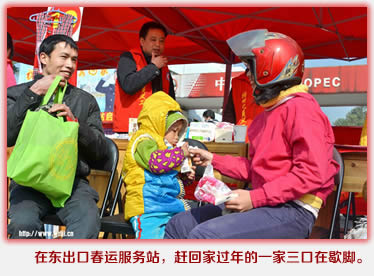 陸波喝完他的姜糖水后,并沒有作太久的停留,檢查一下車后的行李,他又準備上路了。最后他向志愿者們提了一個要求,“讓我給你們拍張照片帶回去吧?!彼f:“回到家里我要告訴他們我在路上遇到了好人?!彪S后,也陸續有其他摩托車農民工提出了要拍照,他們說要把路上遇到的點滴愛心帶回家,記錄他們在春運的旅途上感受到的溫暖。