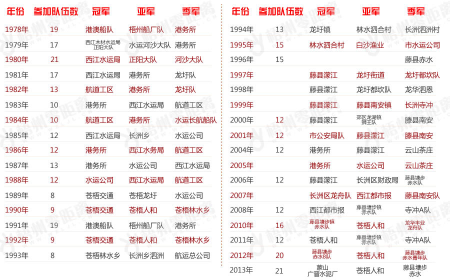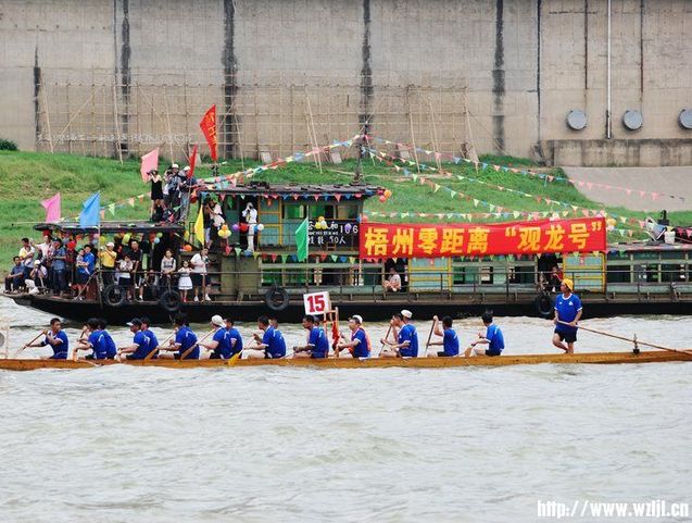 | 2014年6月2日(農歷五月初五)上午11時。在西江河段舉辦2014年梧州市龍舟大賽,起點設在西江大橋汊河橋下河面,終點設在云龍大橋前河面,全程7500米。賽后在鴛江春泛公園進行頒獎儀式。 |