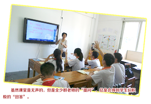 9月3日,“蘋果、蘋果”,在特殊教育學校新學期的課堂上,劉敏麗老師一遍又一遍地讀著這個詞語,同時熟練地比劃著手語,告訴聾兒學生們這個詞語的意思,并示意他們跟著她的口型發音,孩子們張口發出了“龐過”“蓬個”這樣不準確的讀音,劉敏麗卻并不著急,繼續一次又一次地用口型示范糾正孩子們的發音。“教這些孩子就是要有耐心,普通孩子讀兩三遍就會的詞語,他們可能要學上兩三天,但他們會一直很努力地去學。”劉敏麗欣慰地說。