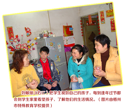 這次比賽在家長中傳開,劉敏麗的父母也從朋友口中聽說了比賽的情況,曾經的質疑與不解,如今化為感動。他們自豪地說:“那個在特殊教育學校任教的老師,就是我的孩子。”