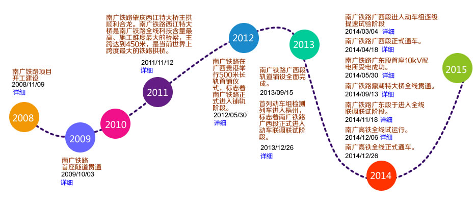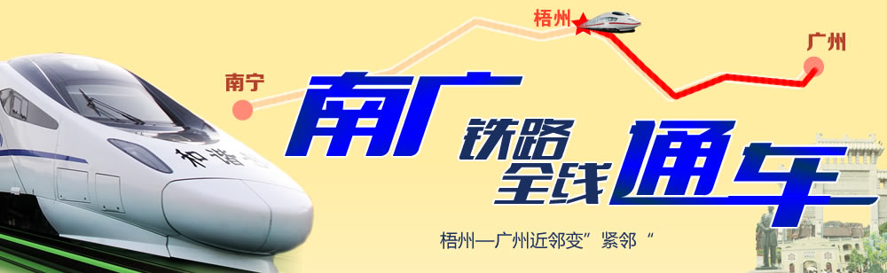 ???????? 南廣鐵路橫跨粵、桂兩省區(qū),全長577.1公里,2008年11月9日正式開工,2014年4月18日廣西段通車,2014年11月8日廣東段開始聯(lián)調(diào)聯(lián)試,12月26日實現(xiàn)全線通車。南廣鐵路的開通,對完善廣西綜合交通體系,特別是對打造梧州成為西江經(jīng)濟帶向東開放的龍頭城市具有重要而深遠(yuǎn)的意義。