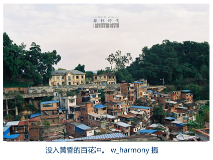傍晚時(shí)分的百花沖,籠罩在金燦燦的陽光下,有著少有的平靜。曾經(jīng)人來人往的沖道街巷,鮮見年輕男女,本應(yīng)四處游蕩的小狗也了無蹤影,在家門口淘米洗菜的老奶奶露出了慈祥的笑容,幾個(gè)老爺爺圍坐在自家門前的石階上,納涼聊天,話語不多,卻這樣安靜地互相陪伴著。曾經(jīng)門口圍滿了孩子的那家小小糖煙店,如今門可羅雀,從店鋪里屋的深處傳出了空幽婉轉(zhuǎn)的粵曲。