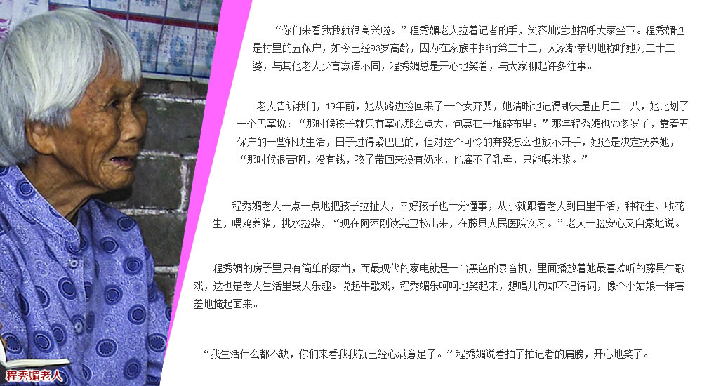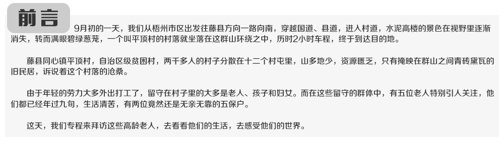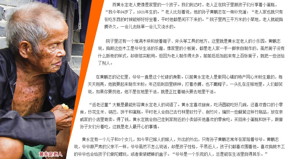 這些已年過九旬的老人,他們或許已經(jīng)不太能用語言流暢地表達(dá)自己了,卻總是默默地用他們那雙勤勞的手,守著清貧,依著故土。如果說生命在于運動,那么也許就是因為這些老人勤勞了一生,所以才如此長壽。他們是這個貧困村最寶貴的財富,但這個村卻沒辦法回饋他們同等的富足。