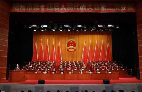 1月24日下午,梧州市第十四屆人民代表大會第二次會議圓滿完成各項預定議程后,在市文化展覽中心勝利閉幕。